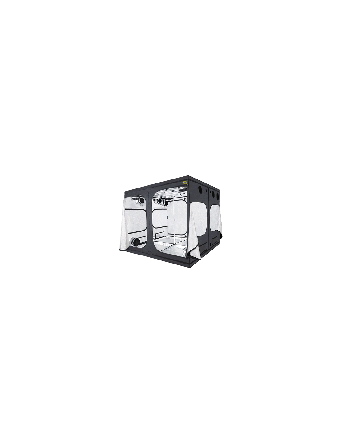 Este armario de cultivo de gran formato (240×240×200cm) con 5,76 m² de superficie ofrece el equilibrio perfecto entre espacio profesional para producciones de gran escala y facilidad de gestión en sistemas de iluminación múltiples o de alta potencia.